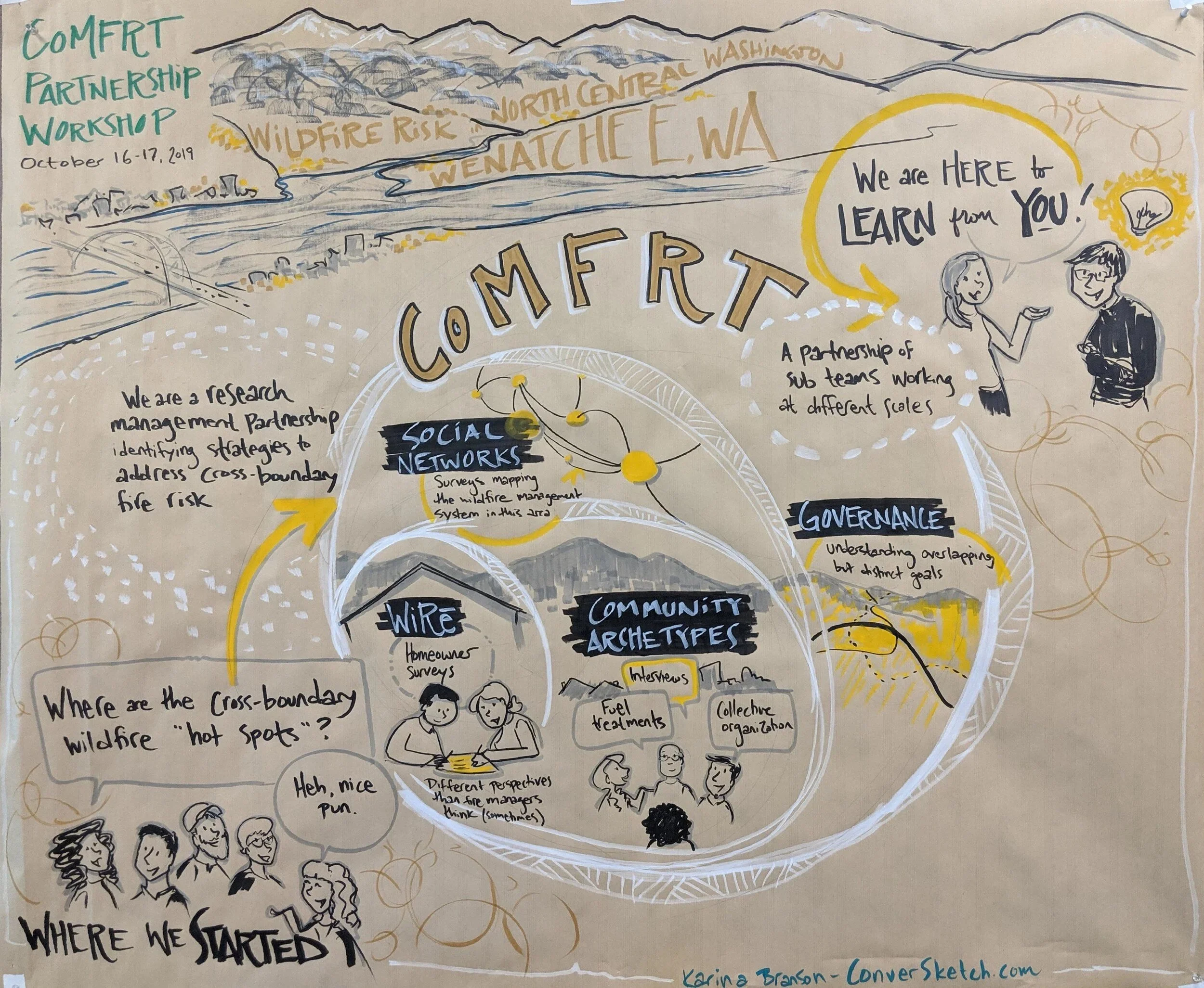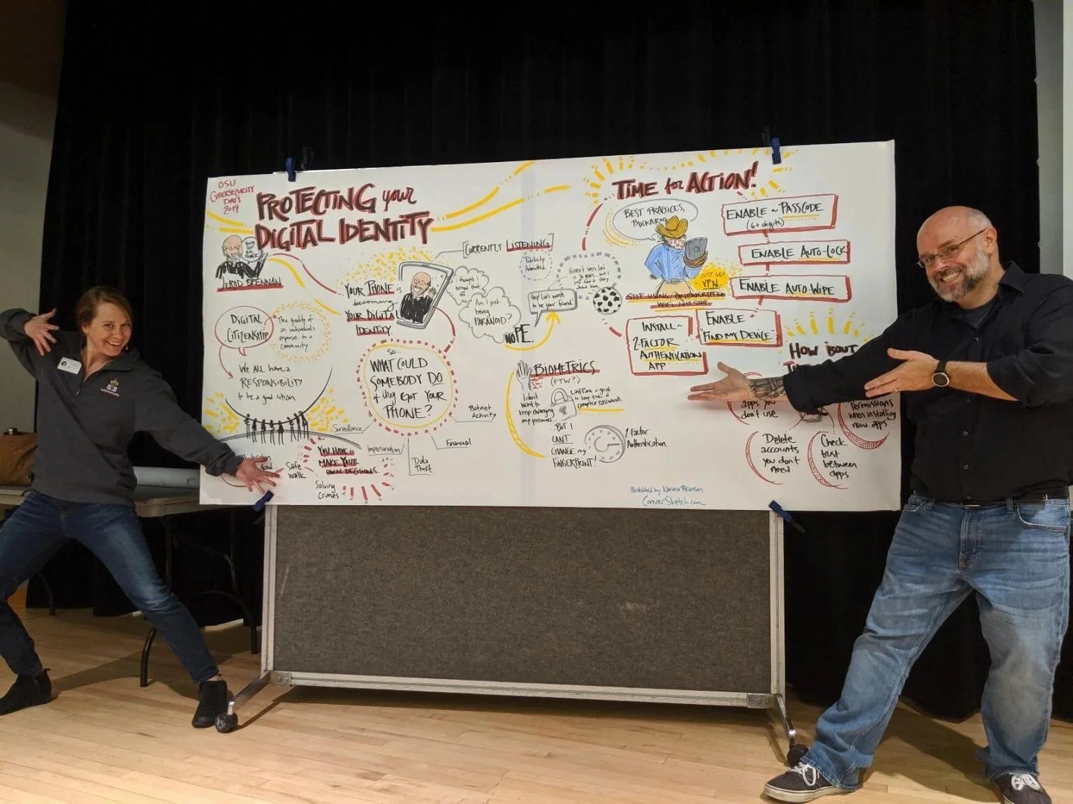 And, if we’re doing our job well as graphic recorders, we can walk this edge of clarifying complexity without over simplifying. Through intentional mark making, considering the right questions, and deep listening, we help distill your hard work navigating the unknown future into what simply makes sense.