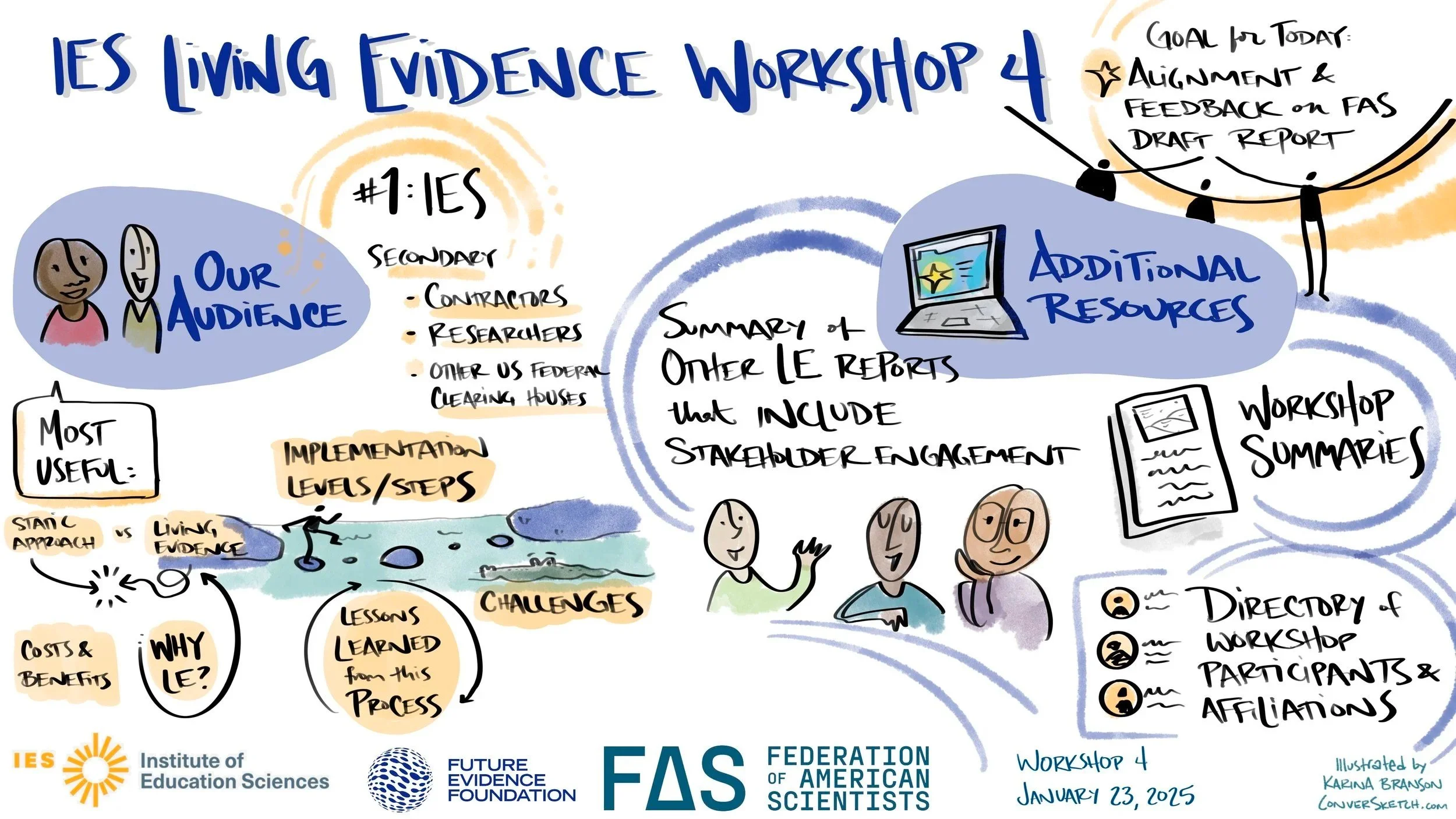 Virtual Workshop: Remotely supporting the Federation of American Scientists and Institute of Education Sciences as they explore whether a Living Evidence approach could work for the research and best practices IES produces and disseminates.