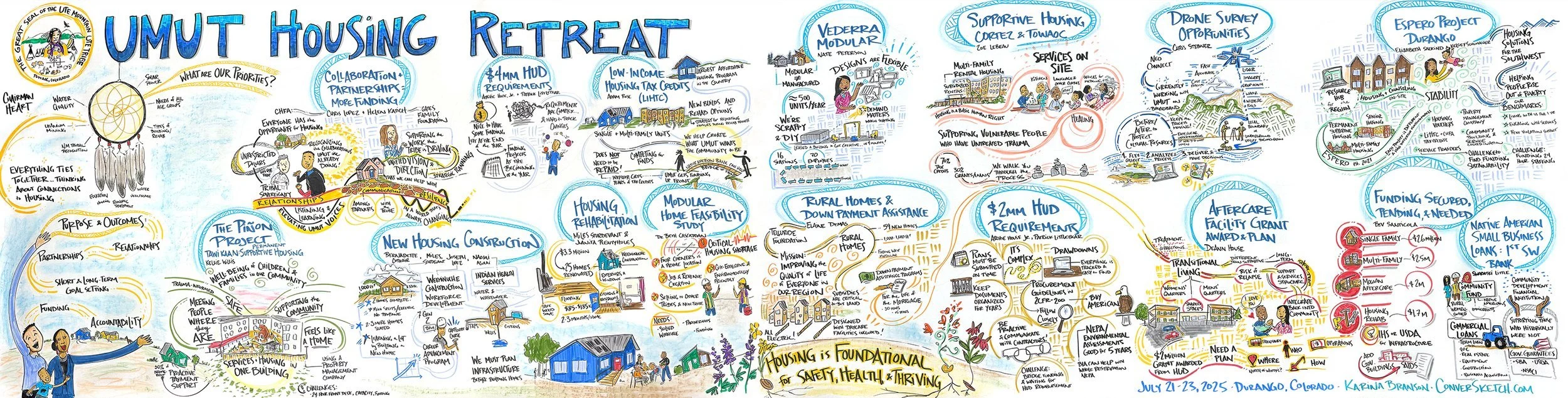 At the Ute Mountain Ute Tribe Housing Workshop convened by Santicola & Co., Tribal Leadership and partners shared resources, case studies, and funding mechanisms, then created a strategic roadmap toward more resilient and abundant housing on the reservation.