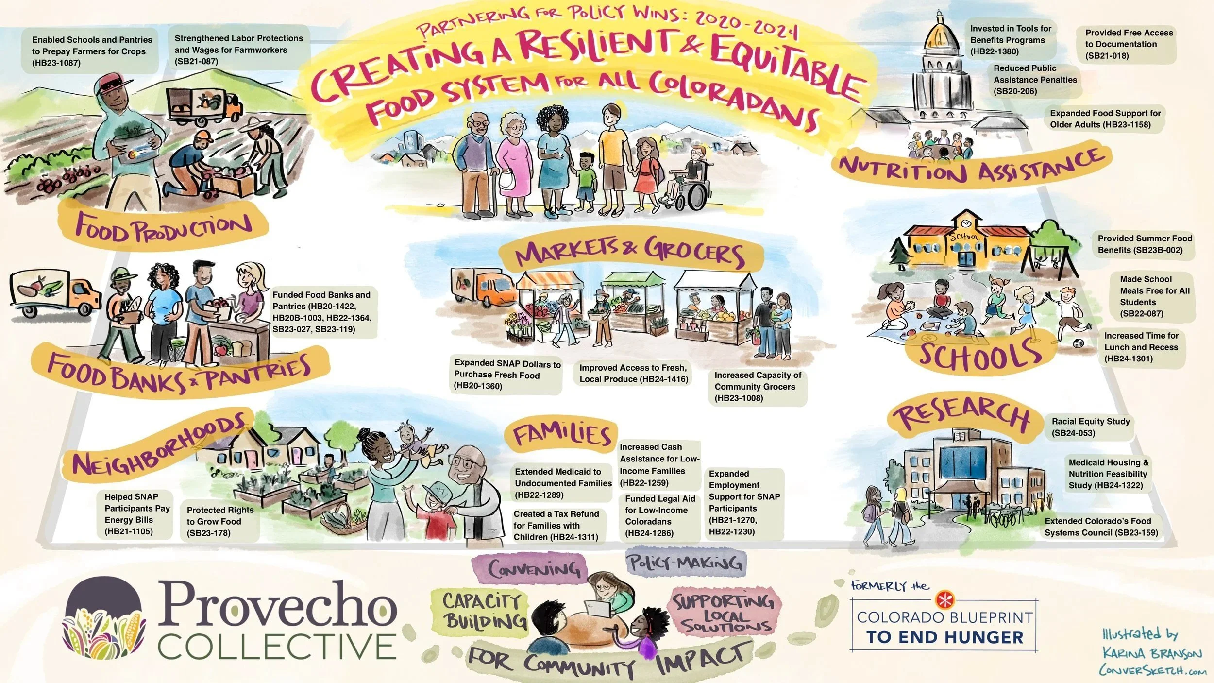 In the Studio: Food Policy Wins. This project with the Colorado Health Foundation was a challenge! We started off with a list of chronological policy wins between 2019 and 2024, and together we refined it to get this map of the food policy ecosystem in Colorado. Well done Provecho Collective!