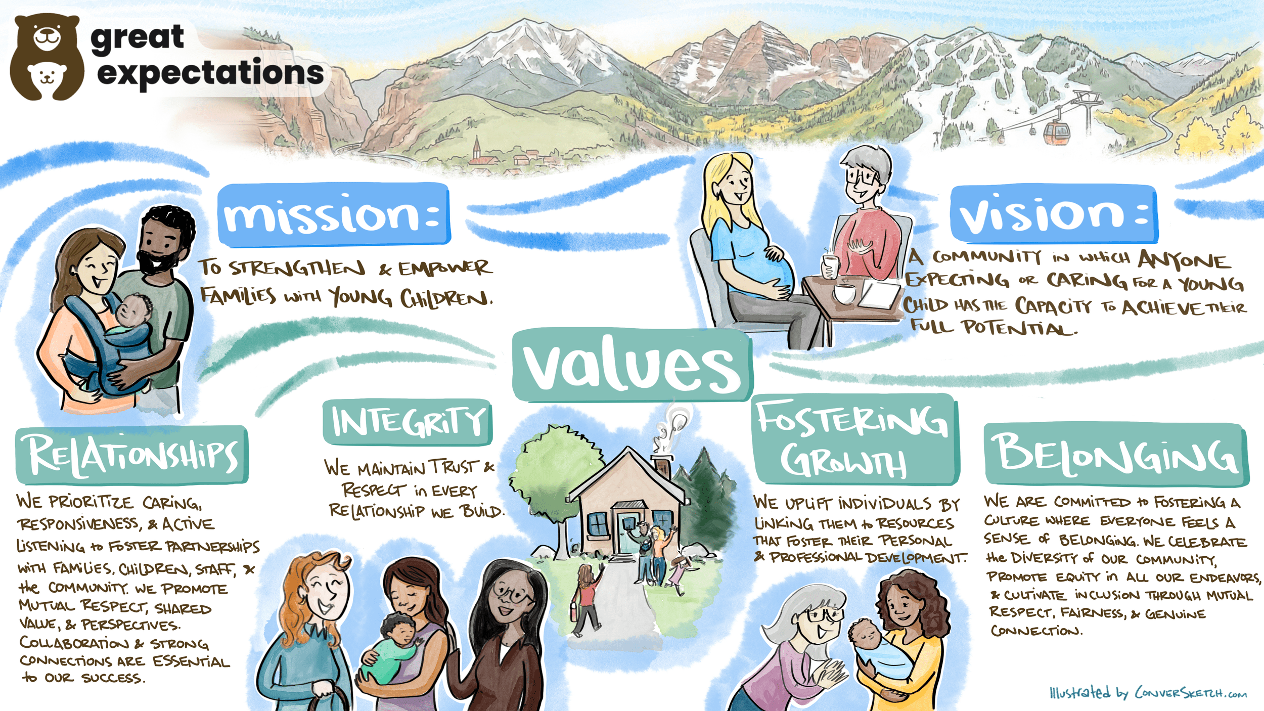 In the Studio: Great Expectations. In the Roaring Fork Valley of Colorado, accessing services when you’re expecting a baby or have a newborn isn’t always easy. Geographically disparate, lots of mountains, and seasonal weather can all make an already difficult time for a family even more challenging. Great Expectations provides home visits and supports for ALL families in the Valley, supporting new parents and their children.