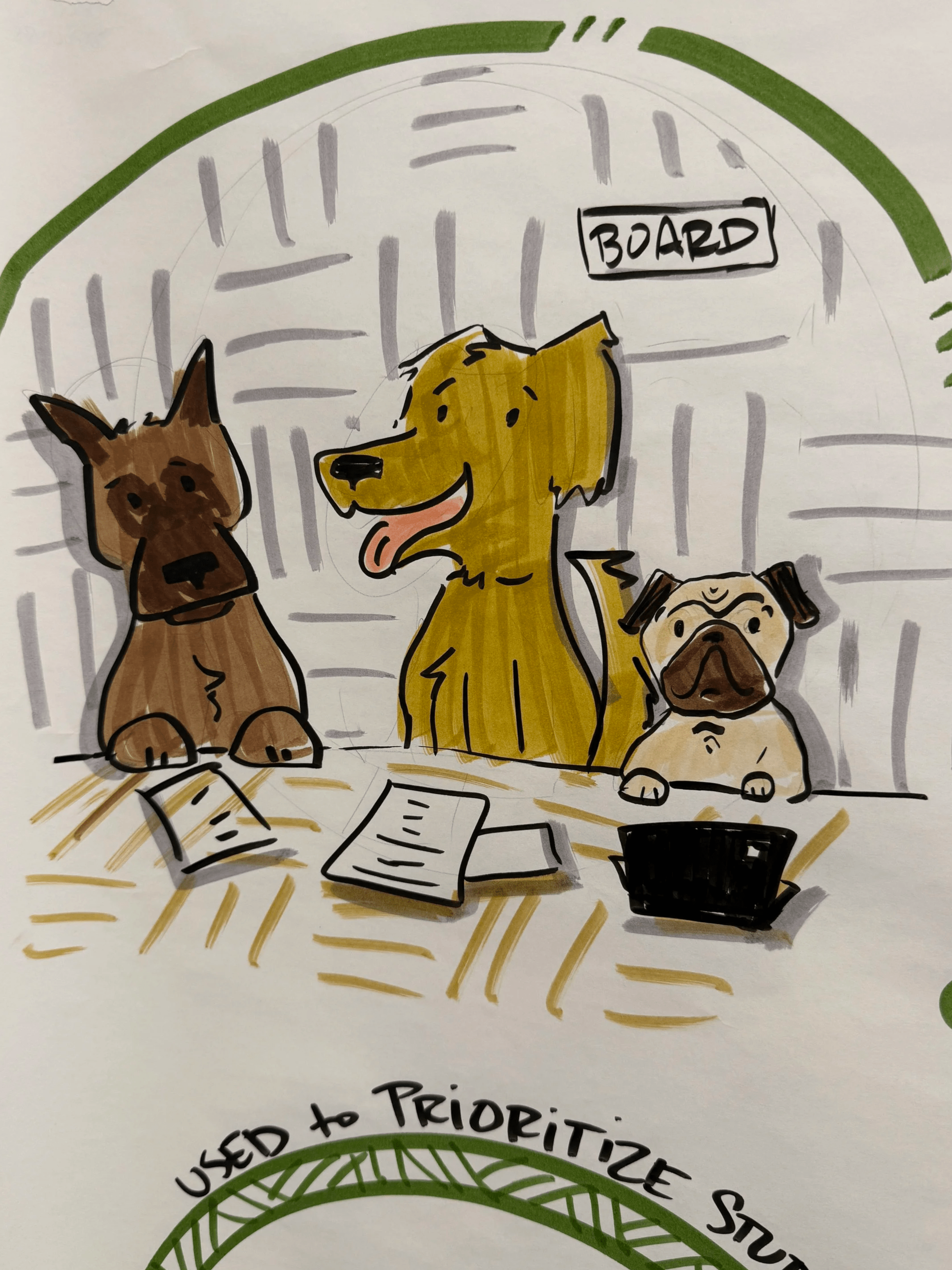 During an initial scoping call, the client wasn’t sure if graphic recording was a good fit for a dry meeting focused on organizational purpose, governance, and operating procedures. How could fun drawings come from that kind of content?