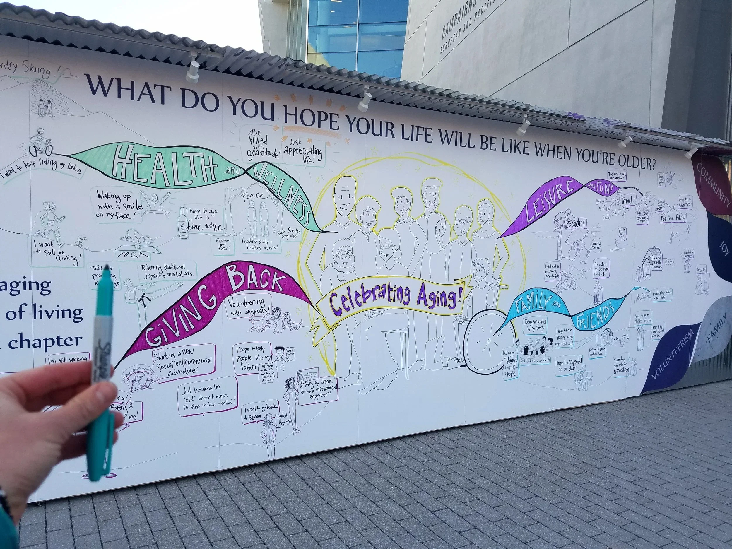 I love chatting with attendees, asking for their ideas, and seeing them light up as they watch their story come to life. Then they want a photo with their drawing, which is the perfect opportunity to ask them to tag the business I am working for when they share it on social media. Boom.