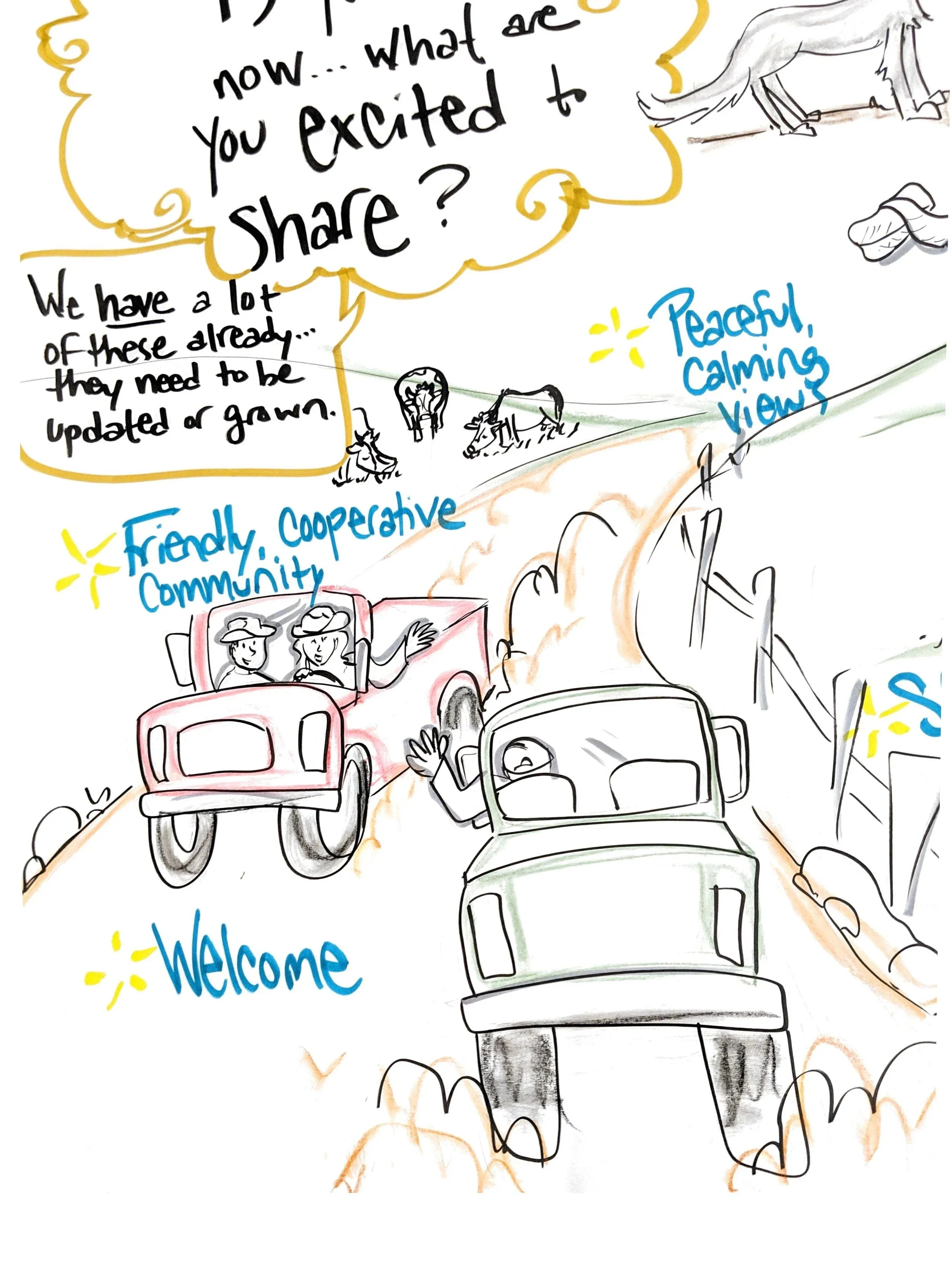 Graphic recording at a public outreach meeting in Custer County, Colorado, to help them capturing the complexity and make tangible their vision of the future!
